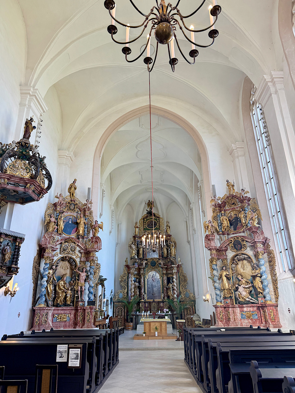 A barokk stílusú templom hatalmas méretével, szelíd szépségével és színes oltárképeivel szinte csak úgy csalogatja a látogatókat. Ha belépünk egyből szembe tűnik a díszítés, amit XVIII. századi mesterek alkottak. Érdemes őket alaposabban is megtekinteni.