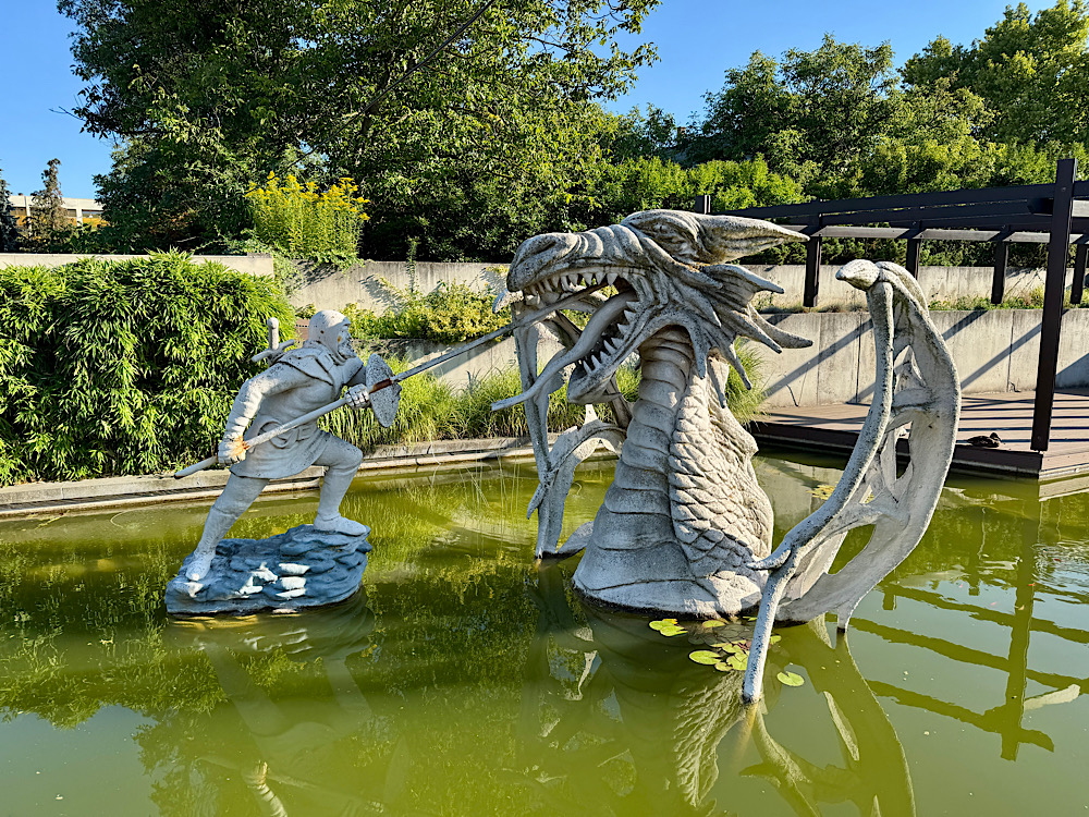 A katolikus templomtól a református templomon át, a várkastélyig vezető út nemcsak egy egyszerű séta, hanem egy nagyszerű időutazás. A gondosan kialakított park eszméletlenül hangulatos. Abszolút elnyerte a tetszésemet. Az információs táblák és a pihenőpadok pedig mind segítenek abban, hogy a város múltja egyszerűen karnyújtásnyira legyen és élvezzük is ezt a sétát. Az egész út mindössze 15 percet vesz igénybe, de ezalatt megannyi sárkányt és szobrot láthatunk.