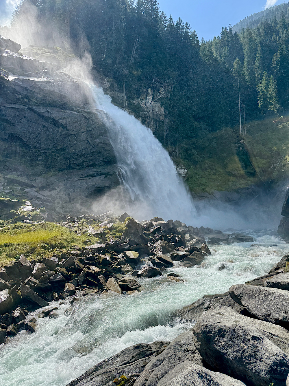 Bár nem a Zillertalhoz tartozik, az ide vezető út során egyszerűen kihagyhatatlan állomás a Krimml-vízesés. A 380 méterről lezúduló víztömeg Európa egyik leglátványosabb természeti jelensége. Több kilátópont kínál lehetőséget arra, hogy közelről csodáljuk a dübörgő vizet, miközben a finom permet frissíti a levegőt. Érdekessége ráadásul az is, hogy ez a pára jótékony hatással van a légutakra.