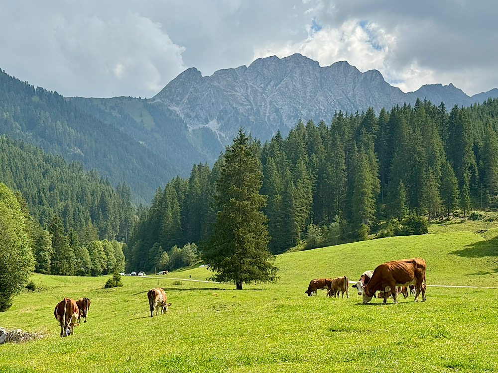 A Zillertali kalandjaink során a gerlosi Schönachhof Camping lett a bázisunk, amely egészen magasan, 1200 méteren található. A kemping környezete varázslatos, így teljesen olyan, mintha egy alpesi képeslap elevenedett volna meg. Hegycsúcsok, zöldellő rétek, csörgedező patak és persze mindenhol békésen legelésző tehenek vettek körül minket.