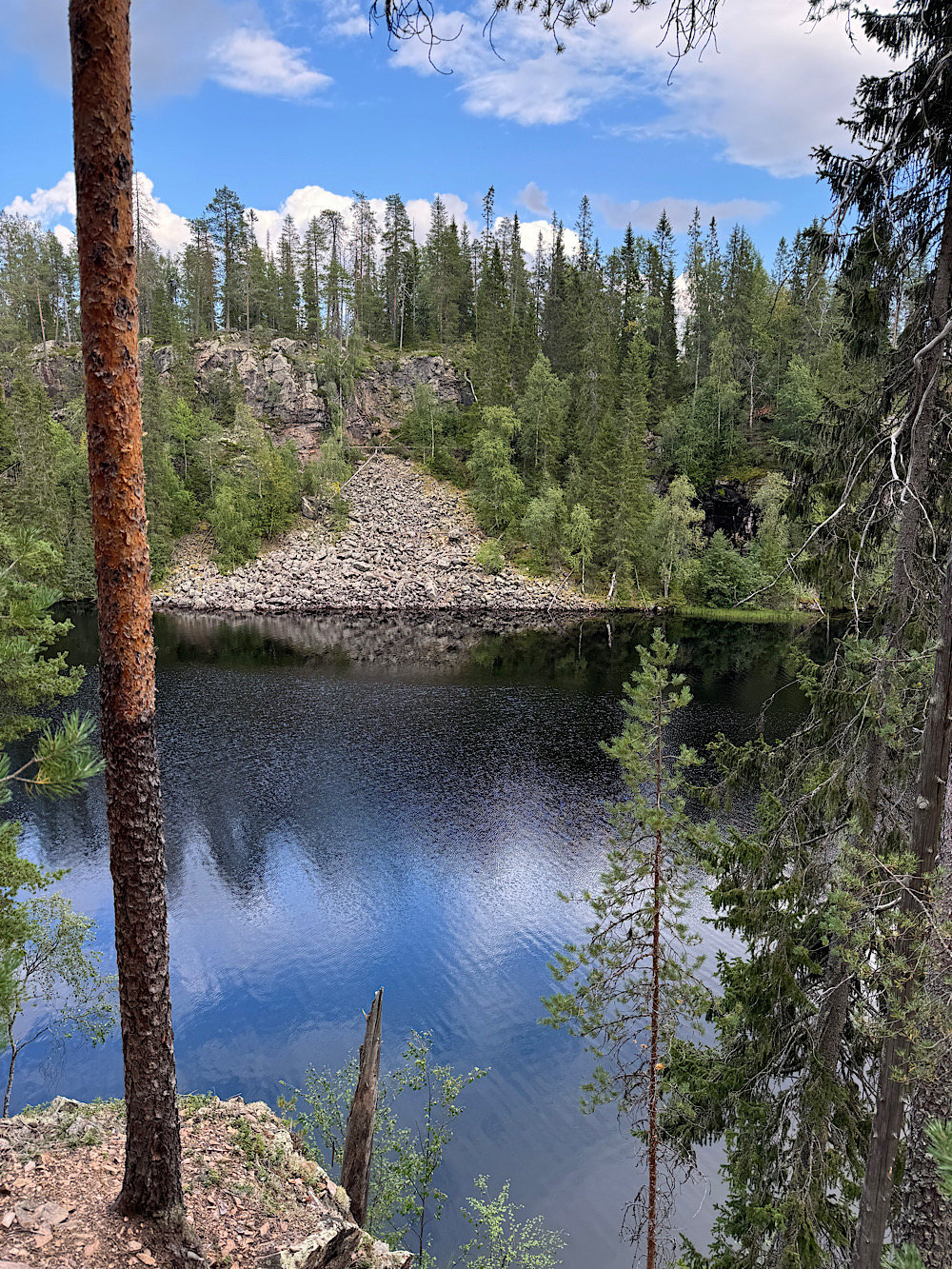Hossa egyik legkülönlegesebb látnivalója a Värikallio sziklafal, ahol több mint 4000 éves sziklarajzokat találunk. A vörös okkerrel festett emberalakok, jávorszarvasok és sámánszimbólumok a régmúlt vadásznépeinek világát idézik meg. A hely atmoszférája egyszerre nyugalmat és tiszteletet sugároz, mintha a természet és az ember múltja egy közös történetet mesélne. A park ezenkívül több mint kilencven kilométernyi kijelölt túraösvényt is kínál, kezdve a könnyű sétáktól, egészen a többnapos túrákig. Az egyik legnépszerűbb útvonal azonban a Julma-Ölkky kanyonhoz vezet, ami Finnország egyik legmélyebb szurdoka. Itt a meredek sziklafalak mellett a tó tükre szinte feketének tűnik a mélységtől. Mi is ezt a programot választottuk ki a nemzeti parkban és utólag bevallom egyáltalán nem bántuk meg!