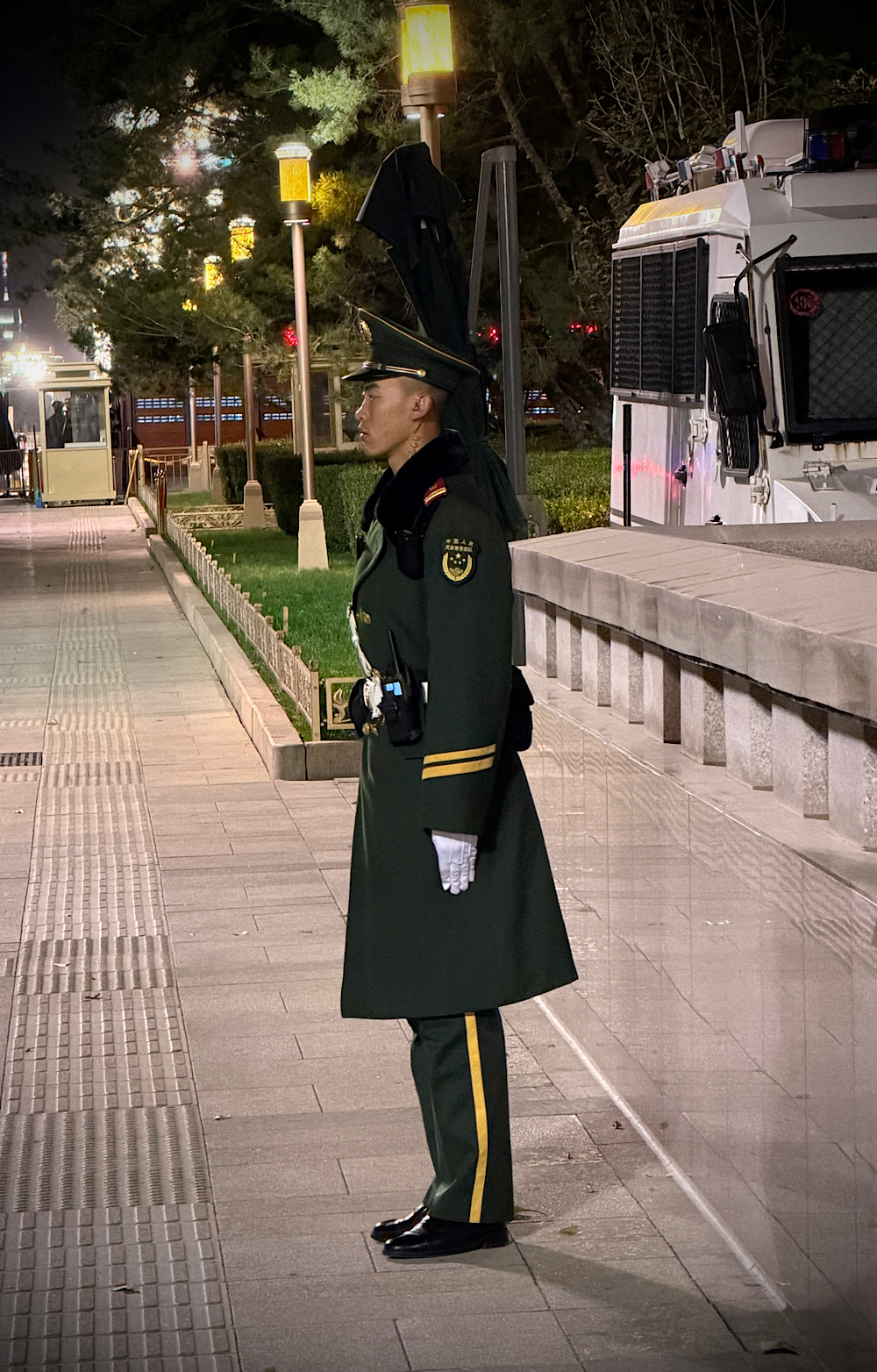 Bár már este volt, nem hagyhattuk ki Peking legismertebb látnivalóit. A Tiananmen tér és a Tiltott Város kívülről is hatalmas élményt nyújt volna, ha közelebbről is meg tudtuk volna tekinteni. A monumentális épületek, a hatalmas terek és az esti fények igazán különleges hangulatot adtak, azonban hamar kiderült, hogy nemcsak a Tiltott Város van zárva, hanem maga a Tiananmen tér is erősen korlátozott sajnos esténként.