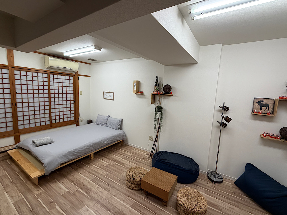 Oszakai szállásunk közvetlenül a Dotonbori negyedben található, ami számunkra ideális választásnak bizonyult, hiszen minden fontos hely könnyen elérhető innen. A japán stílusú, minimalista berendezés külön hangulatot adott az itt töltött napoknak, ráadásul a tokiói szállásunkhoz képest meglepően tágas volt.