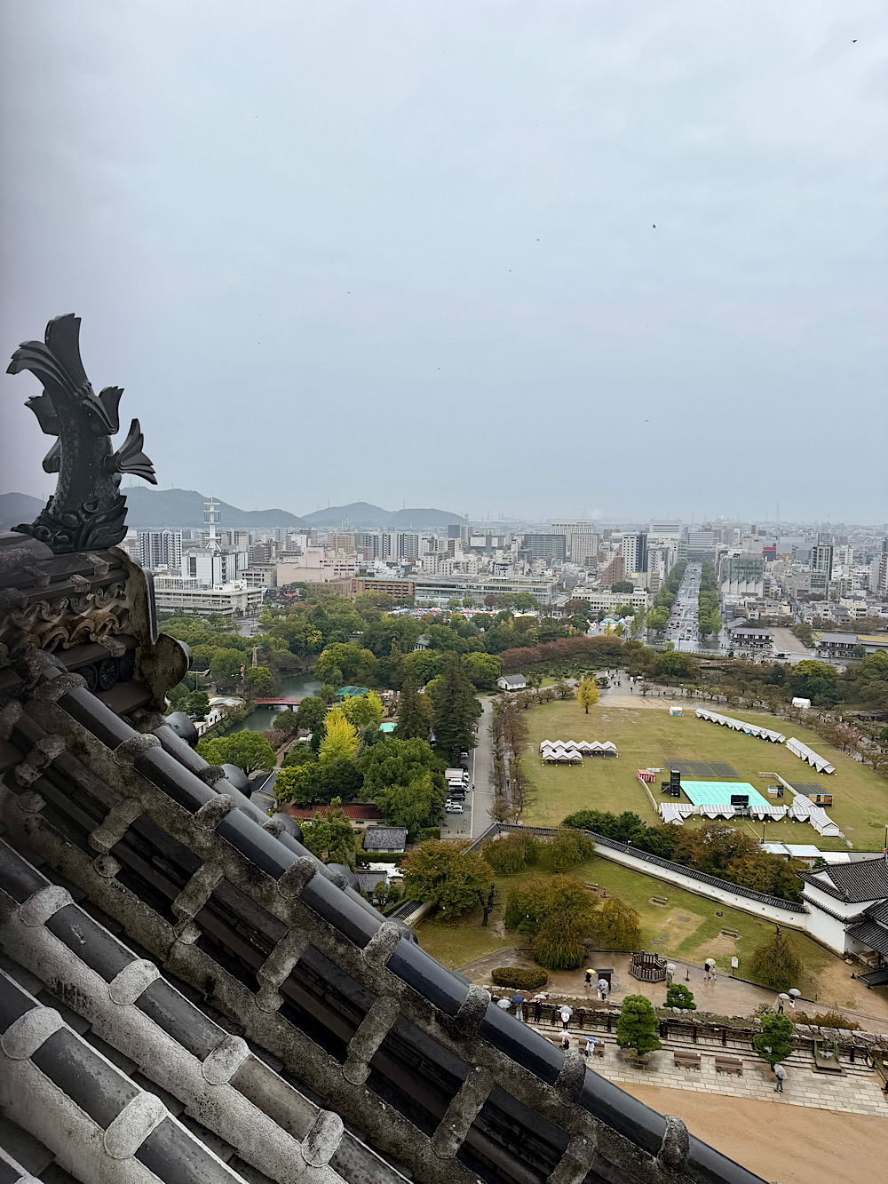 A legfelső szintről lenyűgöző panoráma tárul a látogatók elé. Tiszta időben messzire ellátni a város és a környező táj fölött. Tavasszal, a cseresznyevirágzás idején a vár környéke különösen látványos, mivel a fehér falak és a rózsaszín virágok kontrasztja igazi képeslapra illő látvány nyújt!